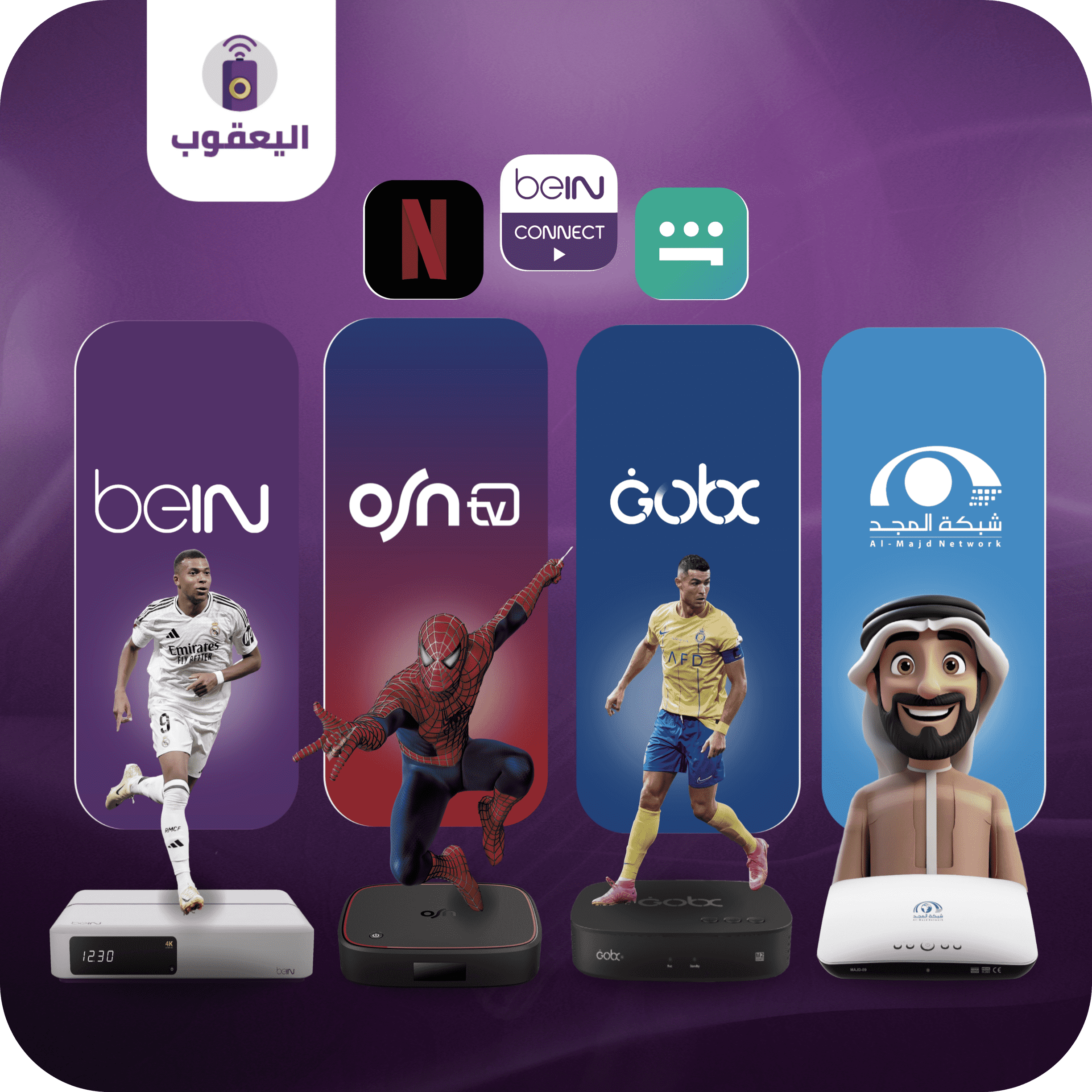 - جميع قنوات الأفلام والأطفال والمسلسلات والوثائقية.