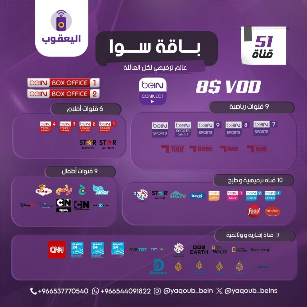 ✅ كما تحصل على رصيد بقيمة 8$ شهرياً لاستخدام خاصية الأفلام حسب الطلب على beIN BOX OFFICE.